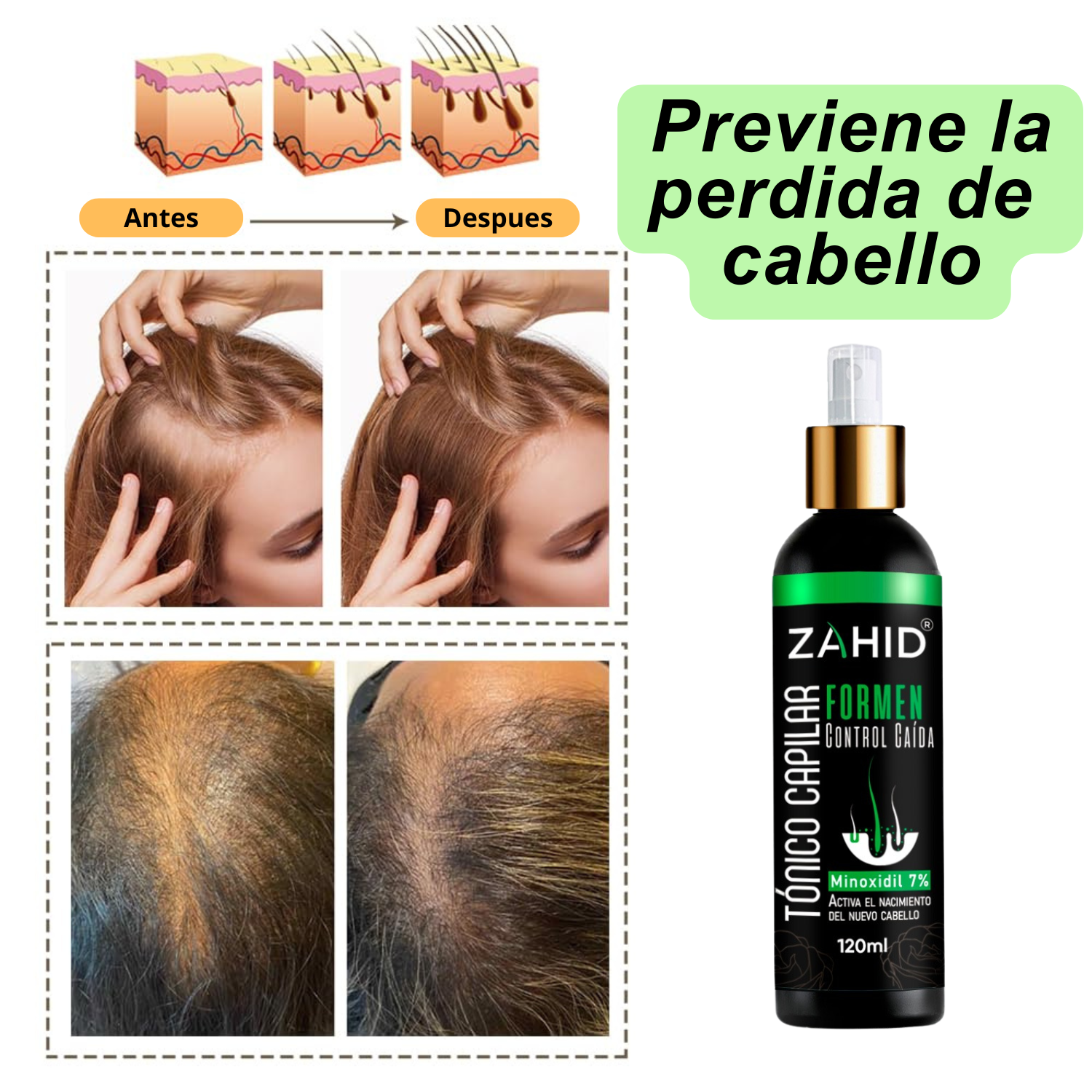 Descubre el Tónico Zahid Hairforce, que detiene la caída y estimula el crecimiento de cabello, cejas y barba. Ideal para hombres y mujeres que buscan un cabello más fuerte y saludable.